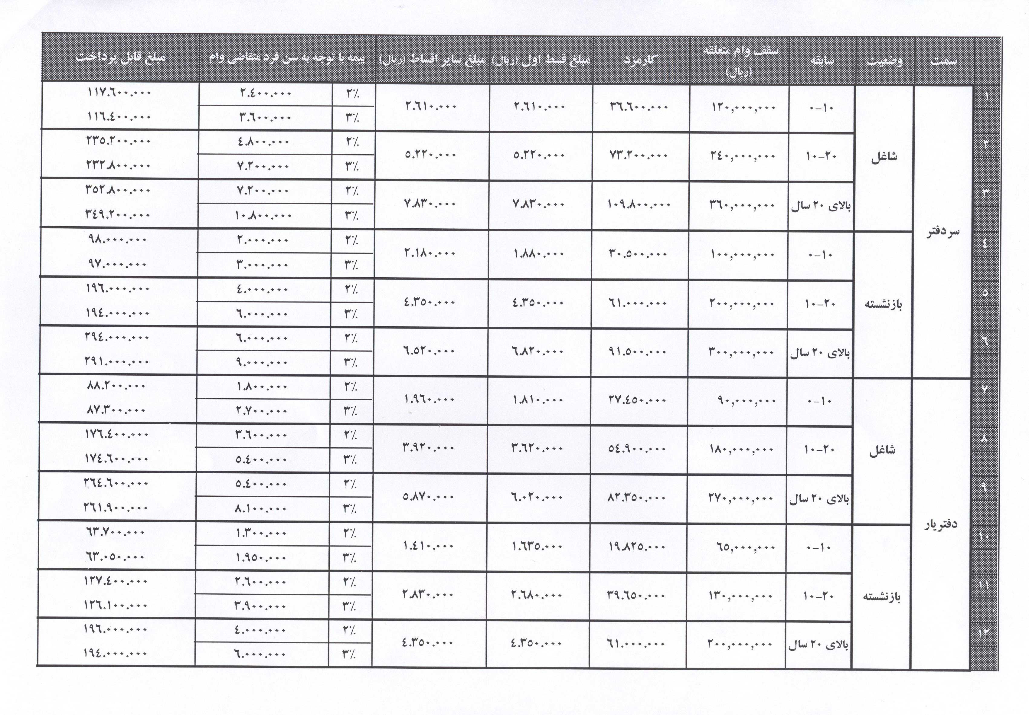 جدول وام صندوق تعاون کانون سردفتران ودفتریاران