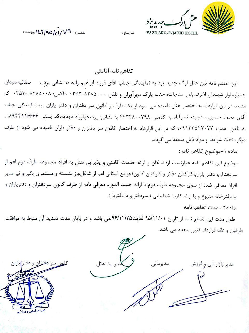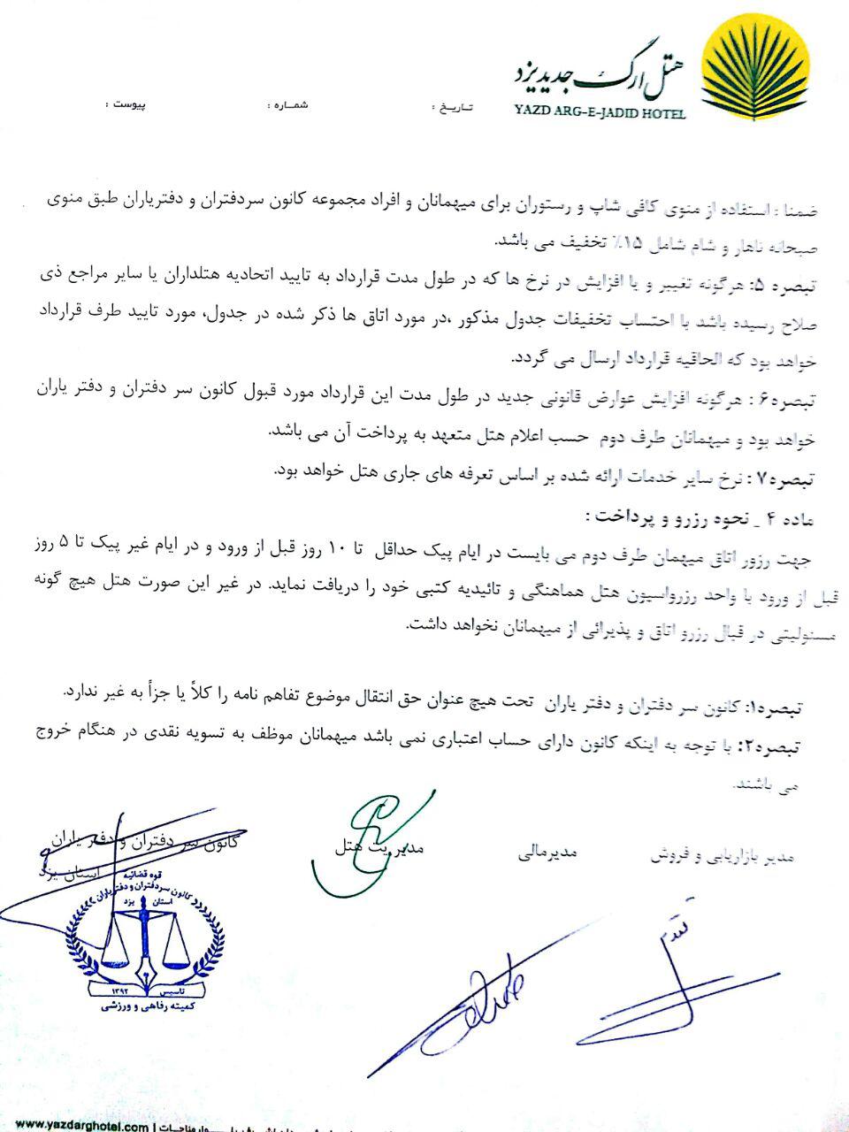 تفاهم نامه استفاده از هتل ارگ جدید یزد 1 2 3
