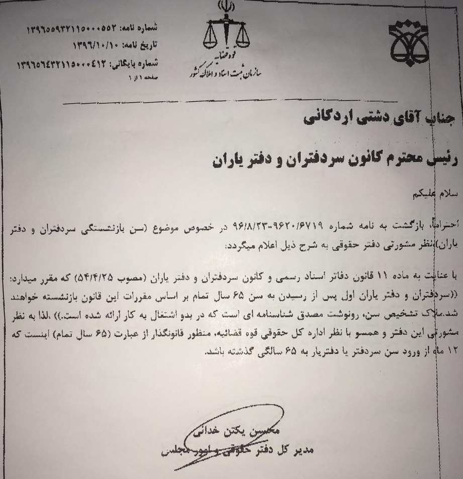 نظریه مشورتی دفترحقوقی درخصوص سن بازنشستگی سردفتران ودفتریاران