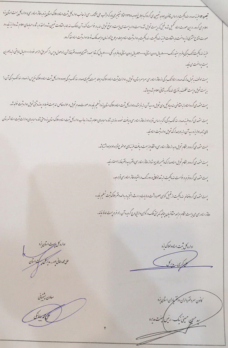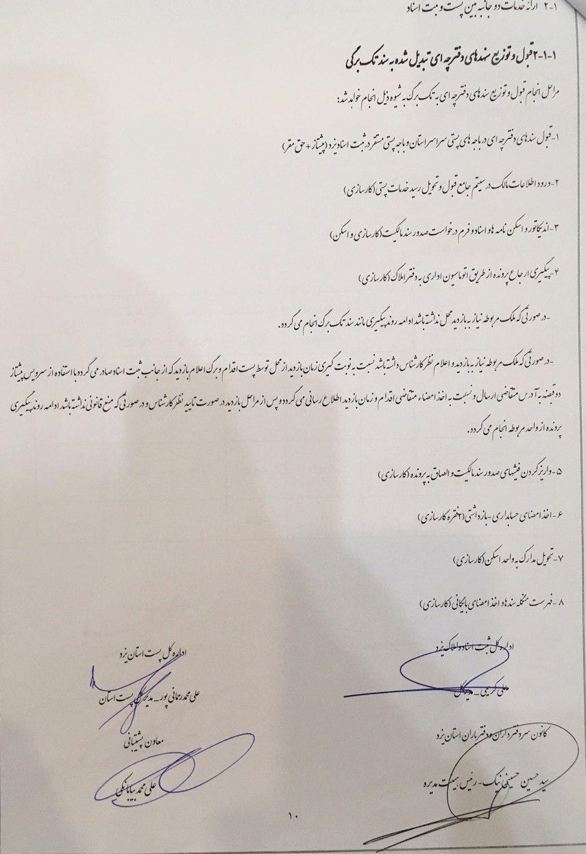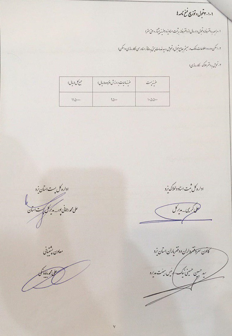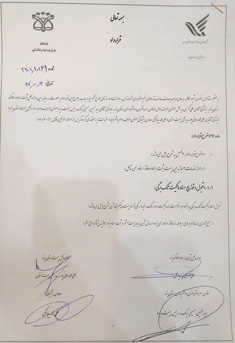 قرارداد پست با اداره ثبت اسناد ودفاتر اسنادرسمی